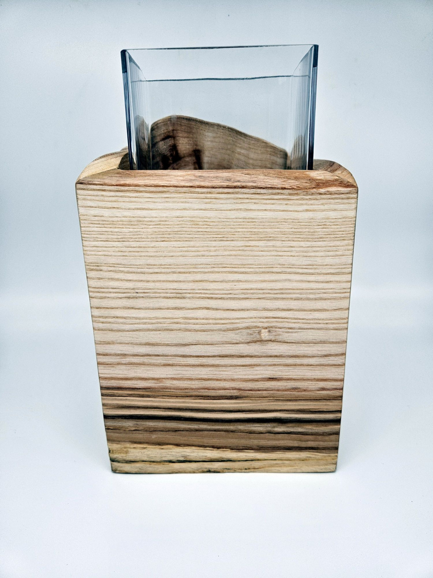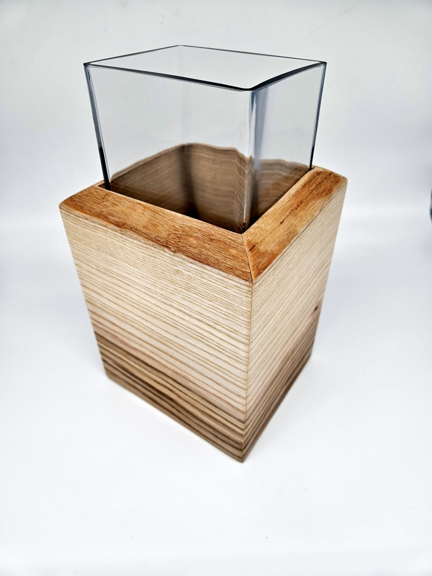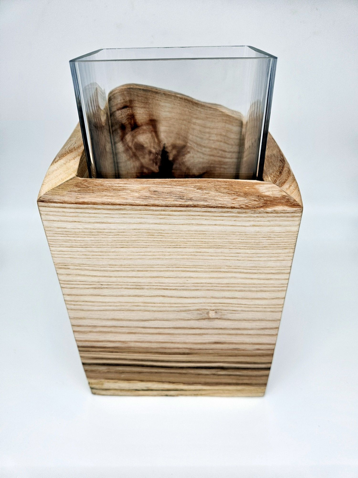 Schlichtes Design trifft auf natürliche Schönheit – diese handgefertigte Blumenvase aus Eschenholz bringt warmen Holzcharme und moderne Formensprache perfekt in Einklang.