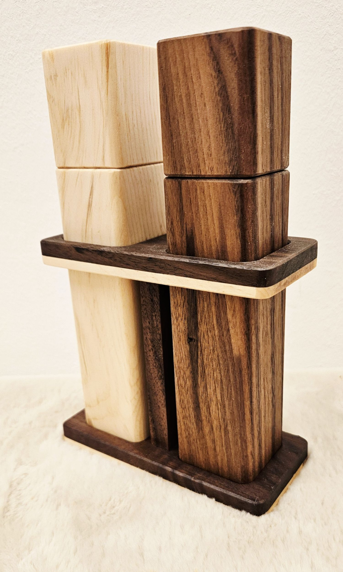 ✔️ Zirbe für Salz, Schwarznuss für Pfeffer – klare Unterscheidung durch das Holz
