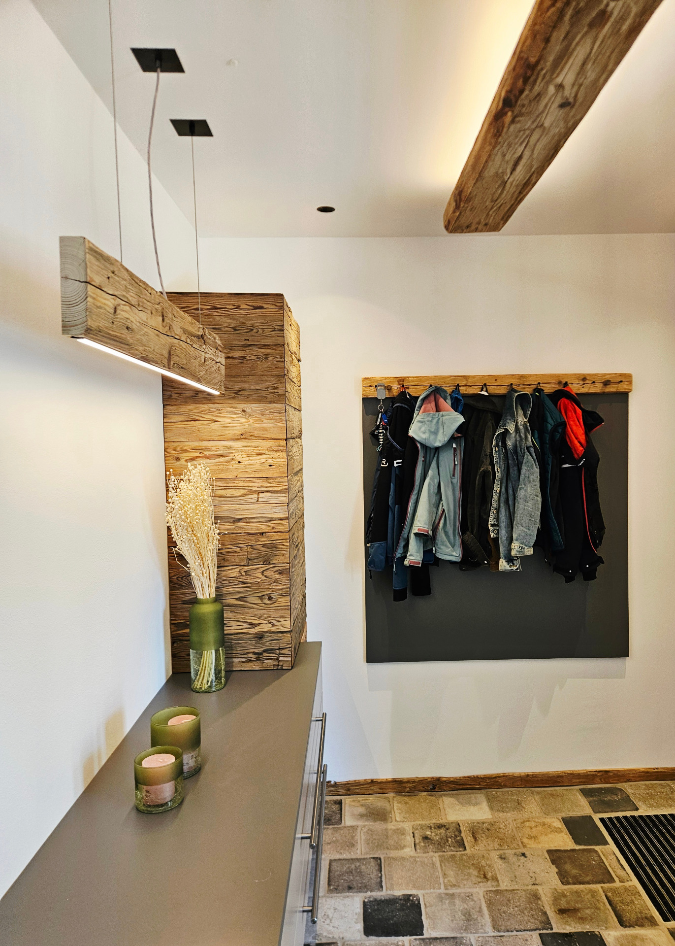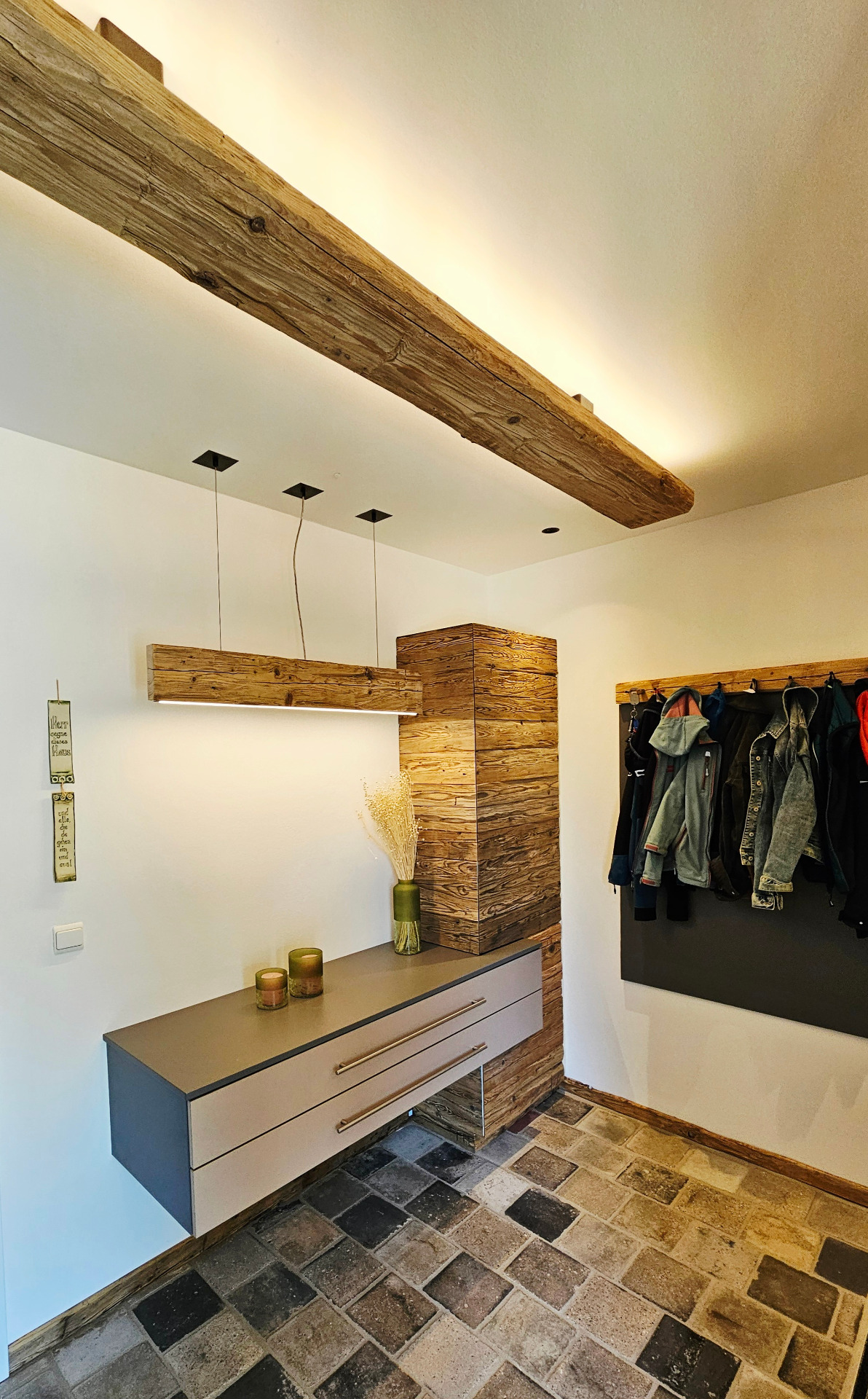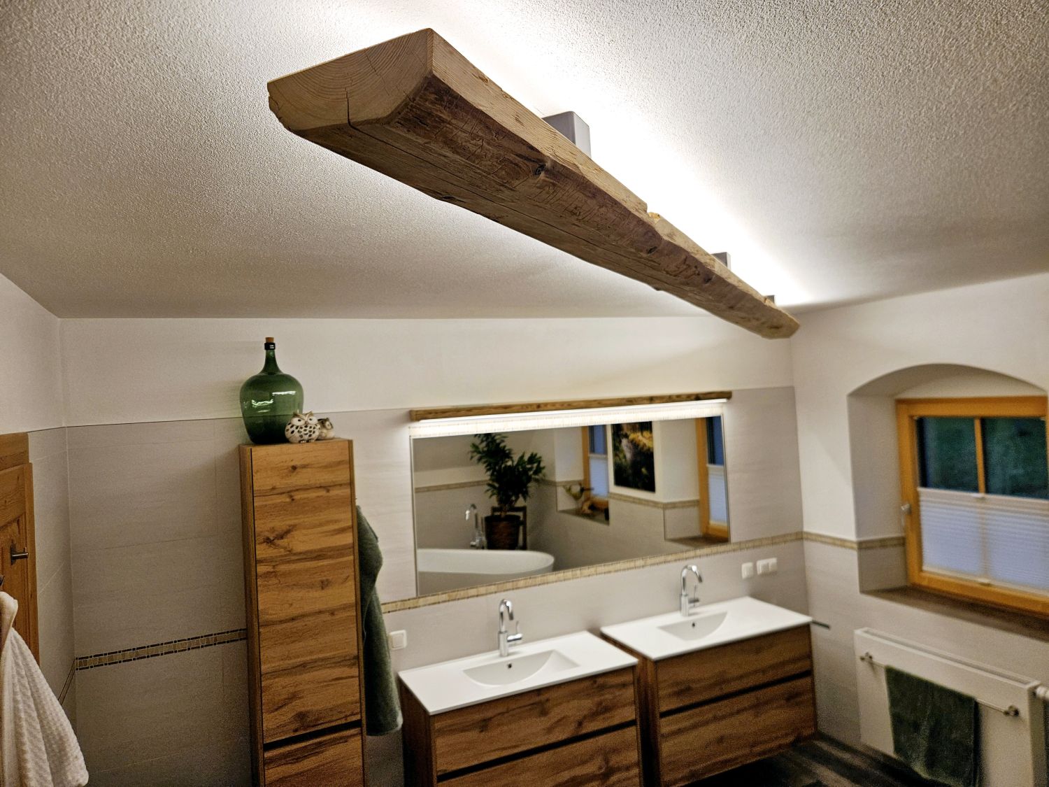 Diese Decken- oder Spiegelbeleuchtung bringt ein Stück Geschichte in Ihr Zuhause. Der gehackte Altholzbalken überzeugt durch seine markante Struktur und warme Ausstrahlung – jedes Stück ist ein echtes Unikat.
