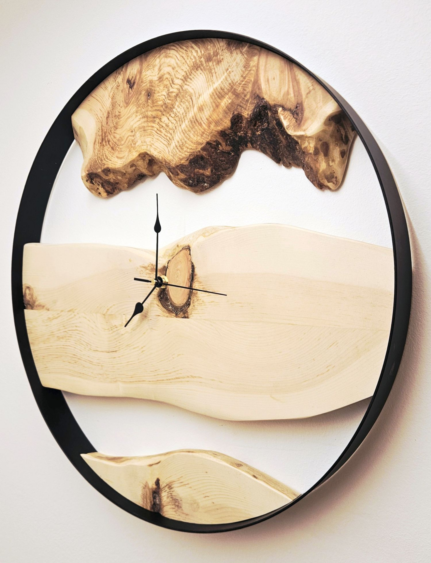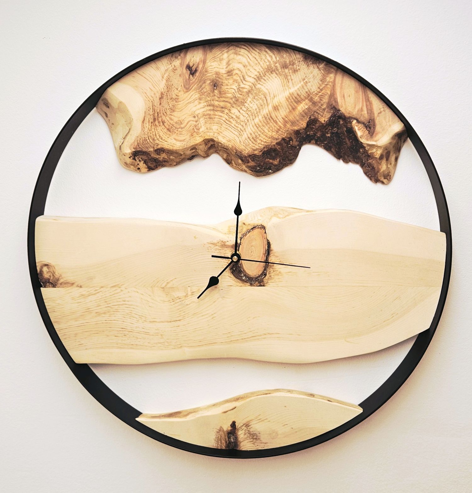 besondere Wanduhr verbindet klare Linien und natürliche Eleganz: