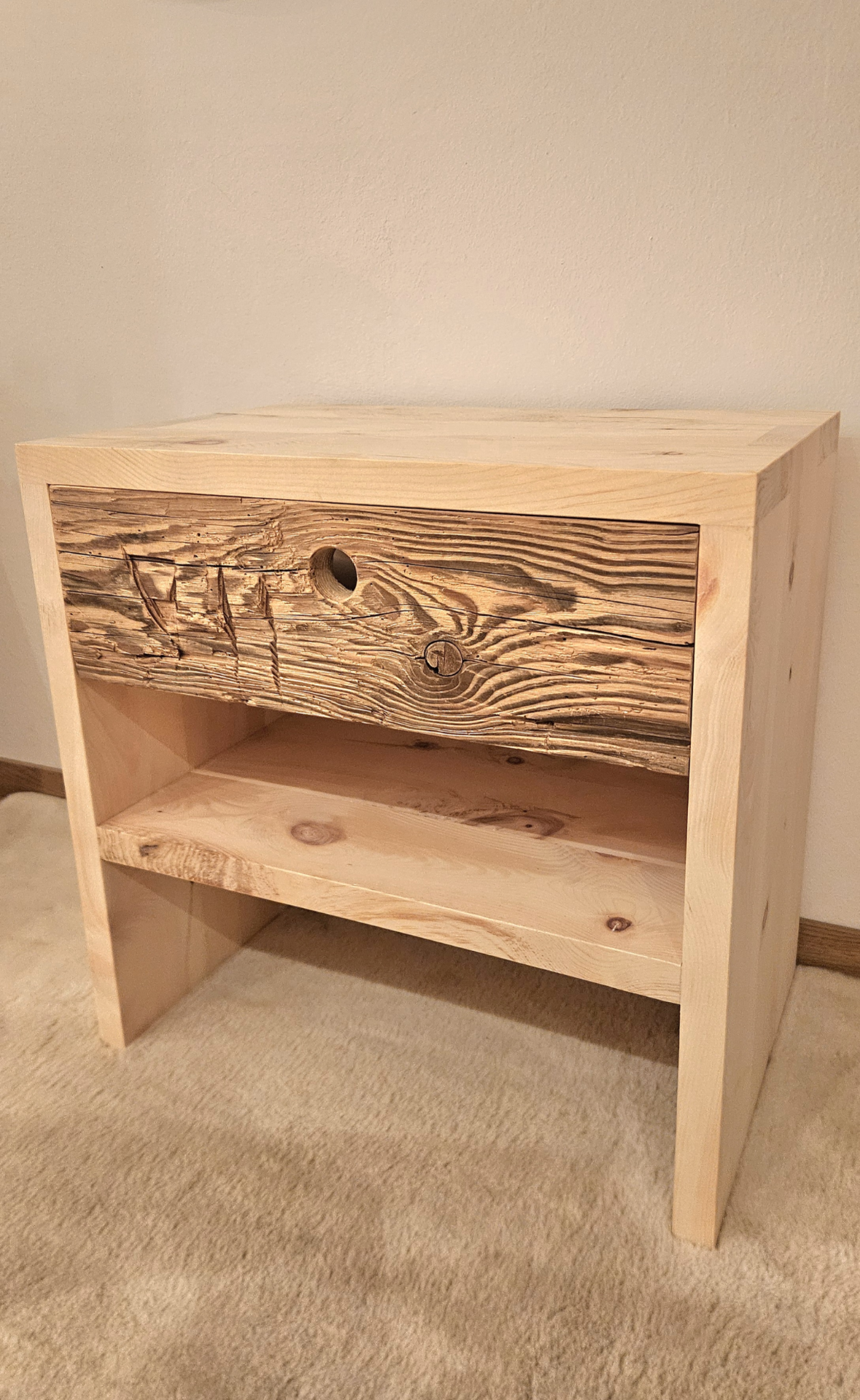 Nachtkästchen aus hochwertigem Zirbenholz. Mit viel Liebe und Sorgfalt