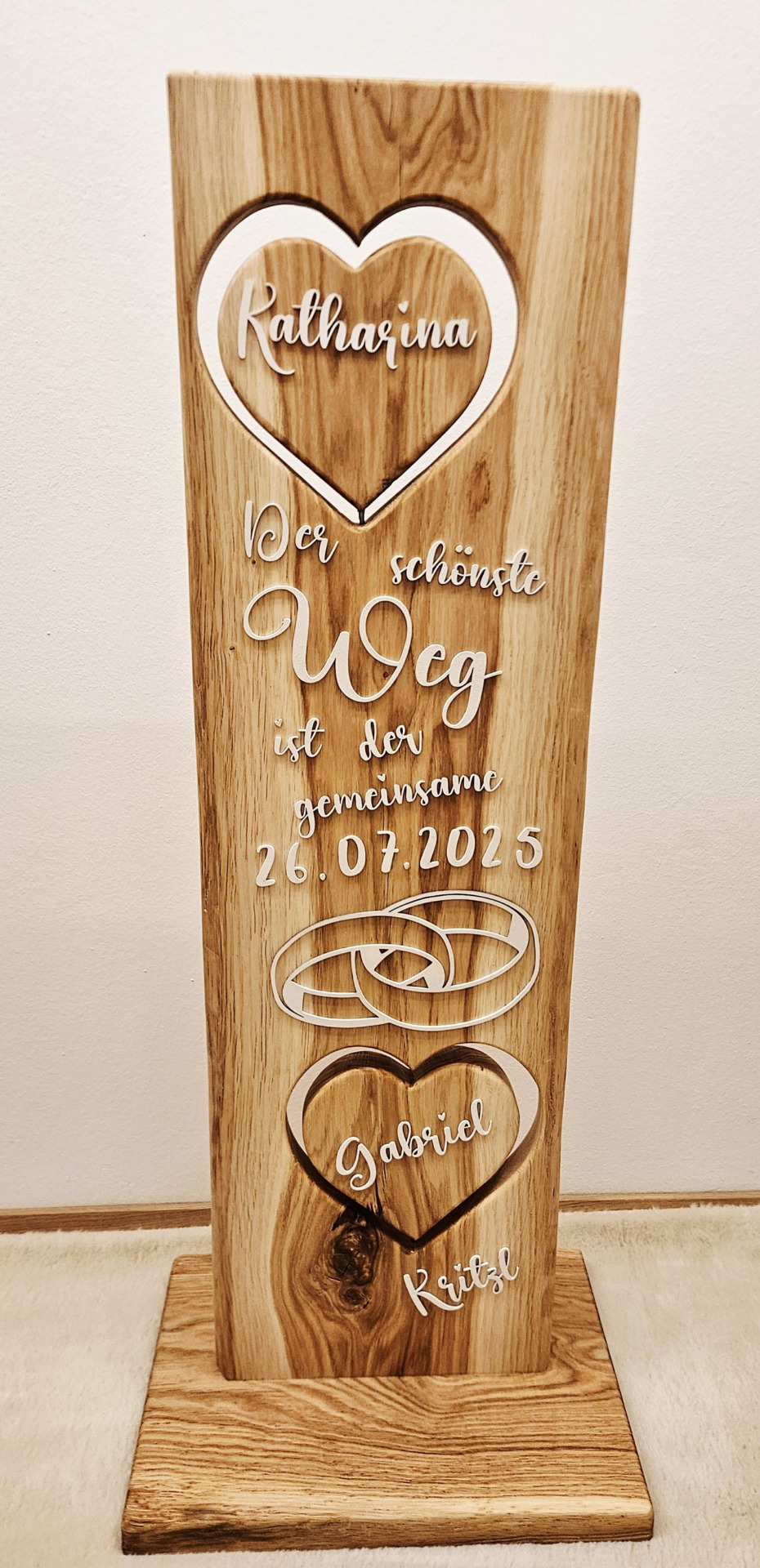 Auch eine 3D-Schrift oder ausgeschnittene Formen (z.B.: Herz) ist auf Wunsch gegen Aufpreis möglich – für eine besonders edle und plastische Wirkung.