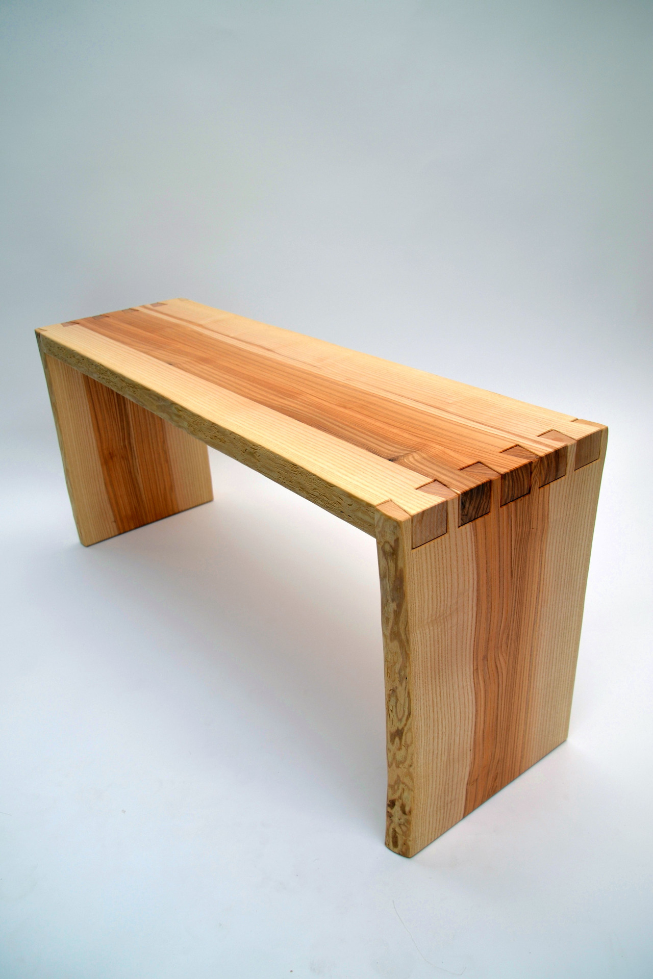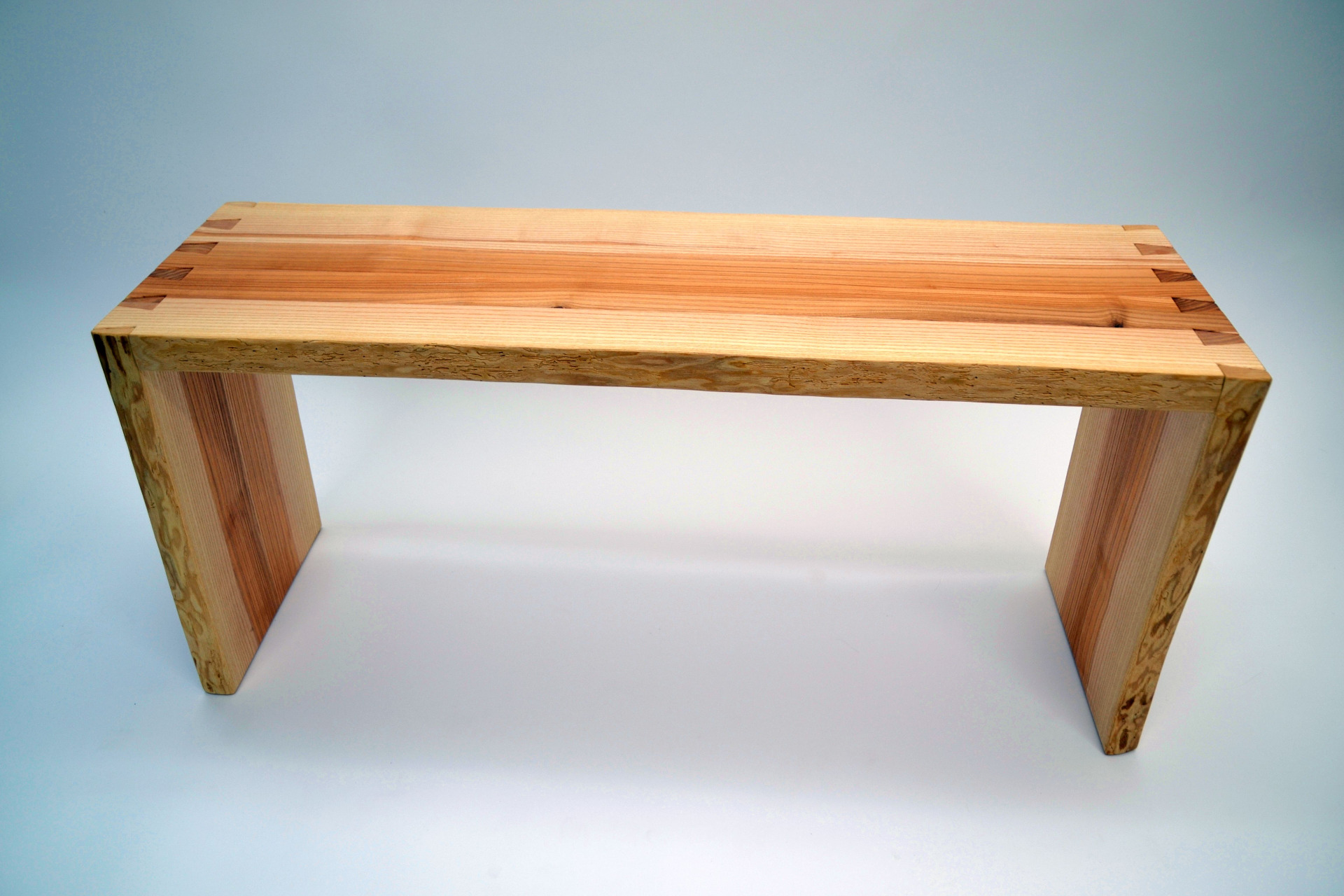 Unsere exklusiven Sitzbänke vereinen traditionelles Handwerk mit modernem Design. Ein besonderes Detail sind die handgefertigten Schwalbenschwanzzinken an einer Seite – ein sichtbares Zeichen höchster Handwerkskunst und Stabilität.