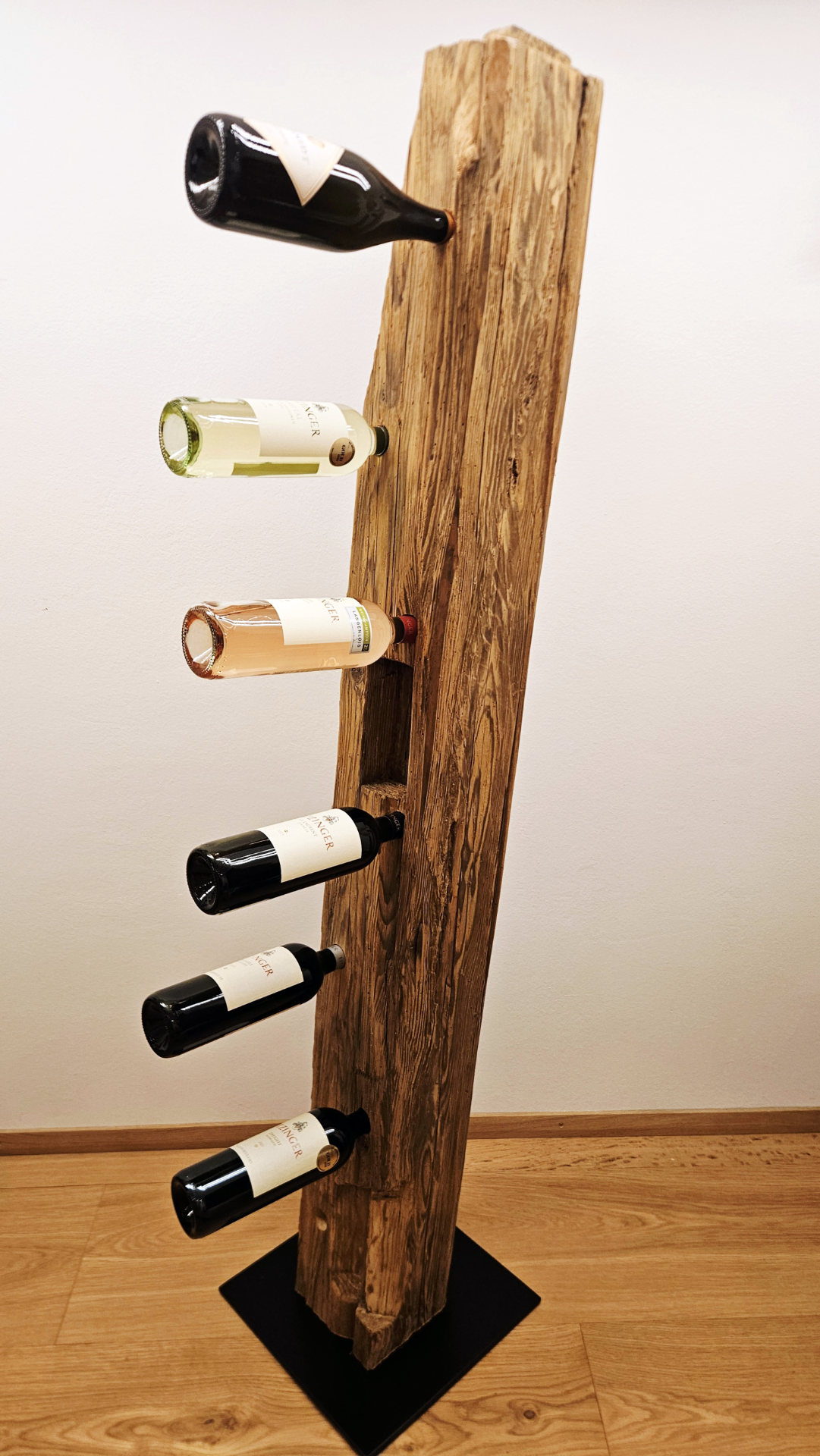 Rustikaler Charme trifft auf edle Handwerkskunst: Unsere Weinständer aus Altholzbalken vereinen natürliche Schönheit, Stabilität und zeitloses Design. Jeder Ständer wird in sorgfältiger Handarbeit gefertigt und ist ein einzigartiges Unikat, das deinem Wohnraum Charakter verleiht.