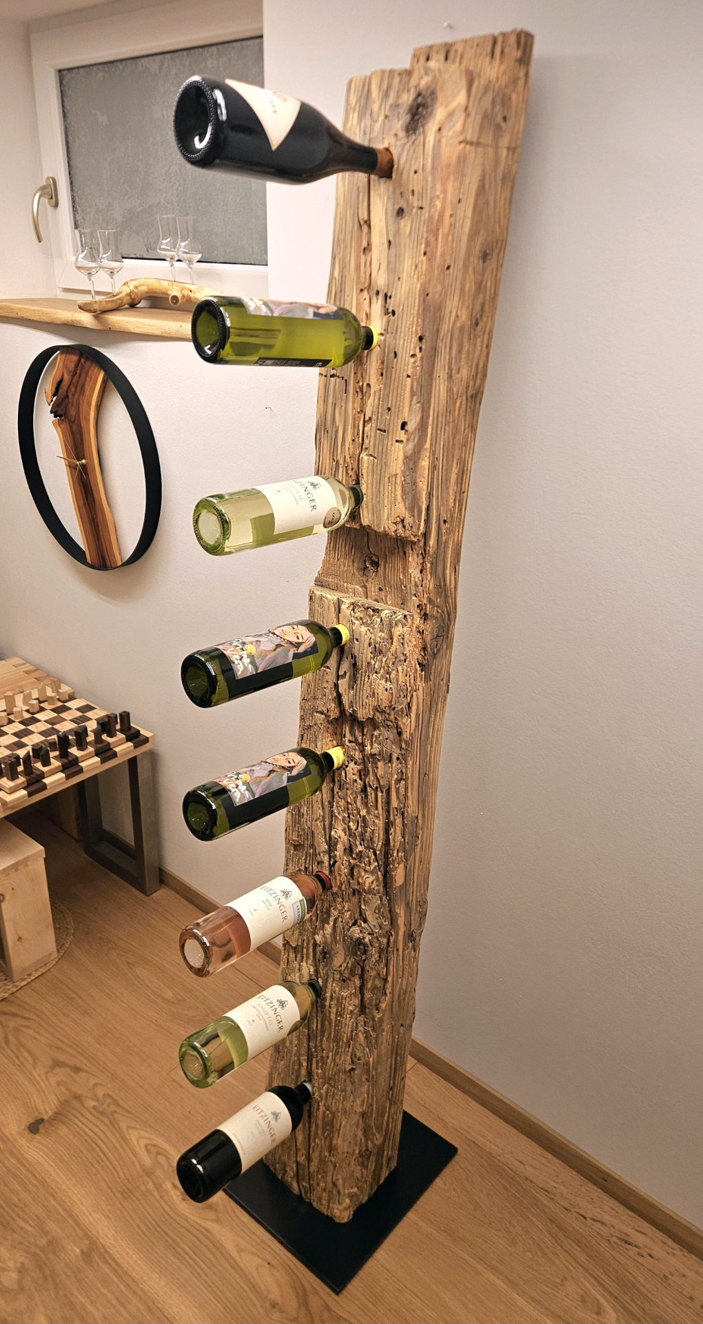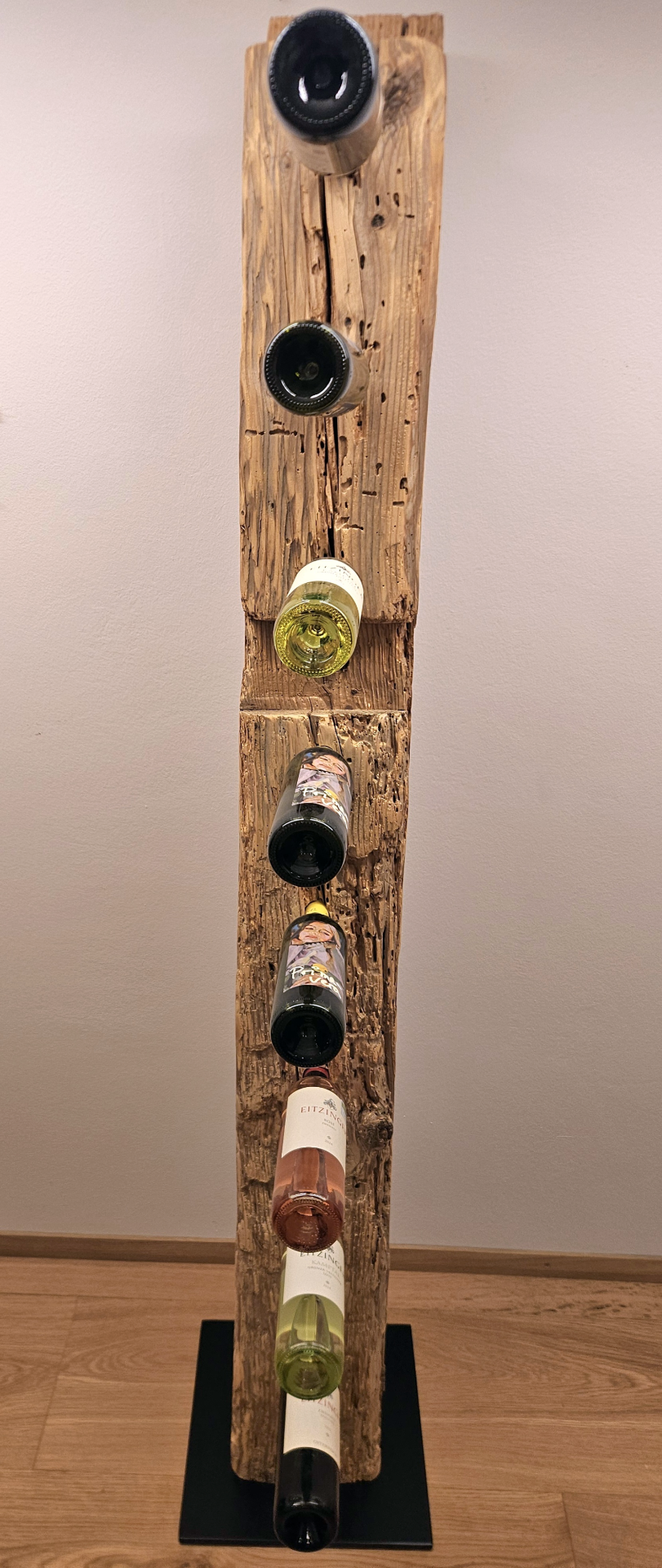 Rustikaler Charme trifft auf edle Handwerkskunst: Unsere Weinständer aus Altholzbalken vereinen natürliche Schönheit, Stabilität und zeitloses Design. Jeder Ständer wird in sorgfältiger Handarbeit gefertigt und ist ein einzigartiges Unikat, das deinem Wohnraum Charakter verleiht.