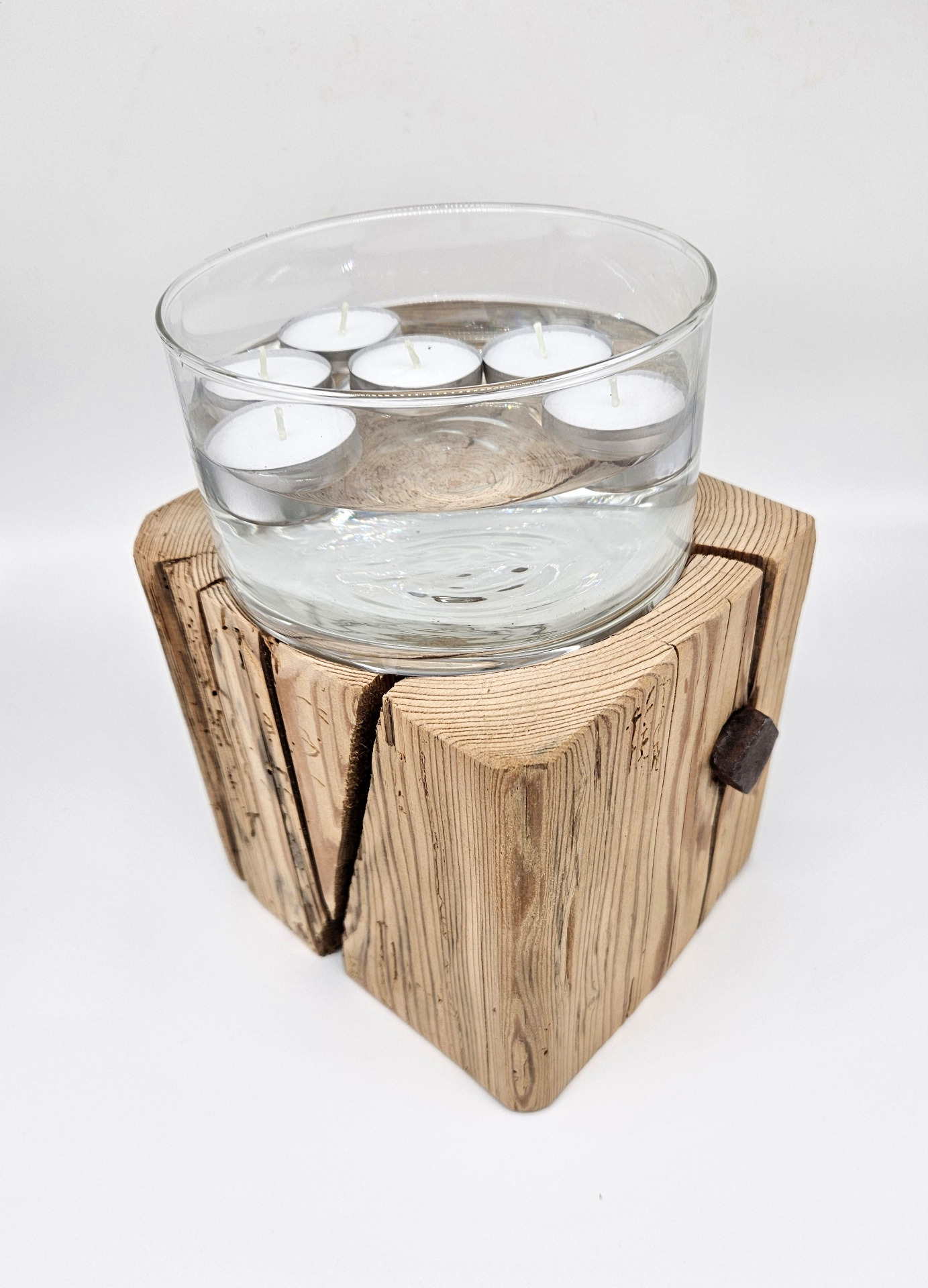 Rustikal, natürlich und stimmungsvoll – dieses Windlicht aus Altholz verbindet warmen Holzcharakter mit schlichtem Design.